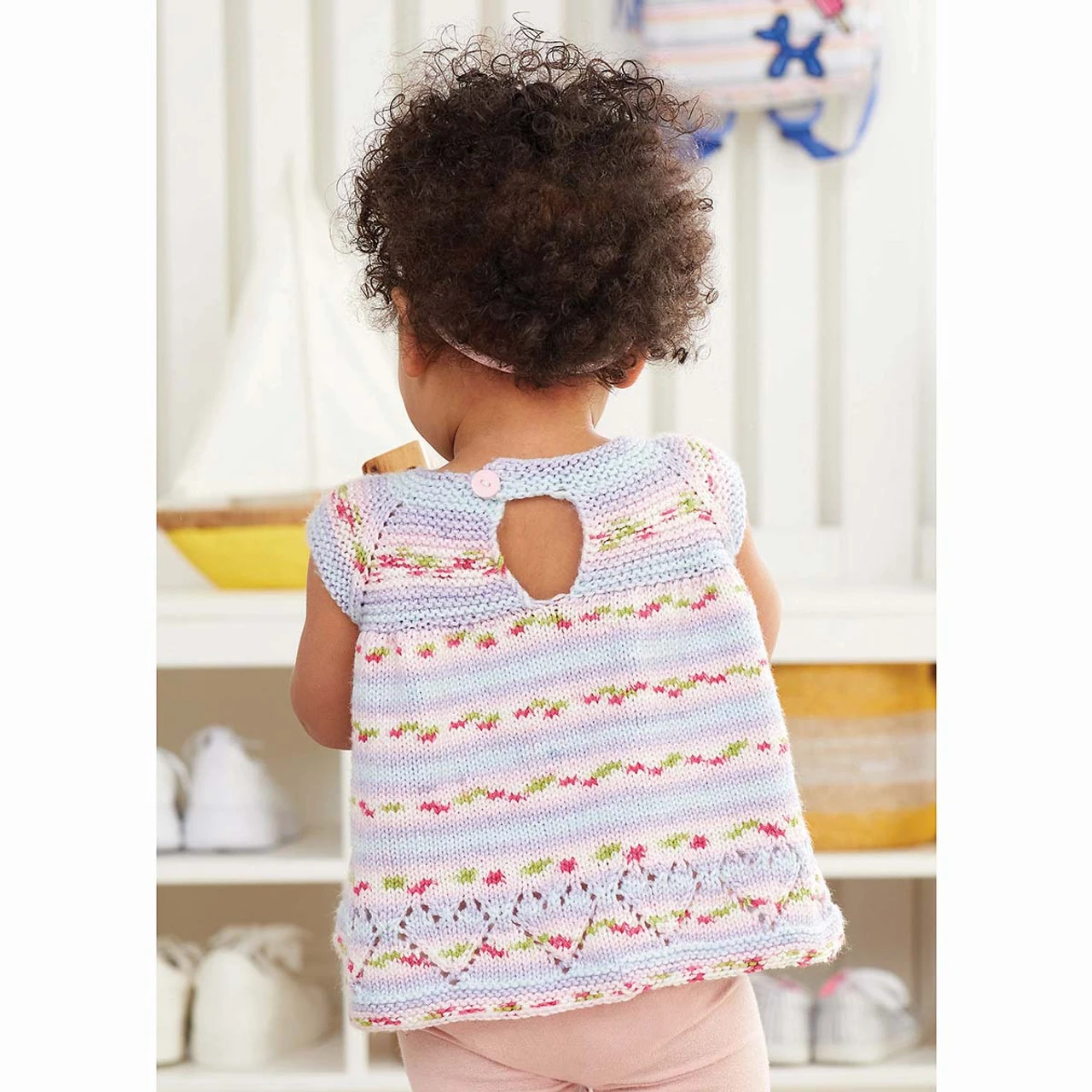 Add this darling dress to your little girl’s spring wardrobe. Kit includes Premier Bloom DK yarn and experienced knit instructions. 3-24 mos. Imported.